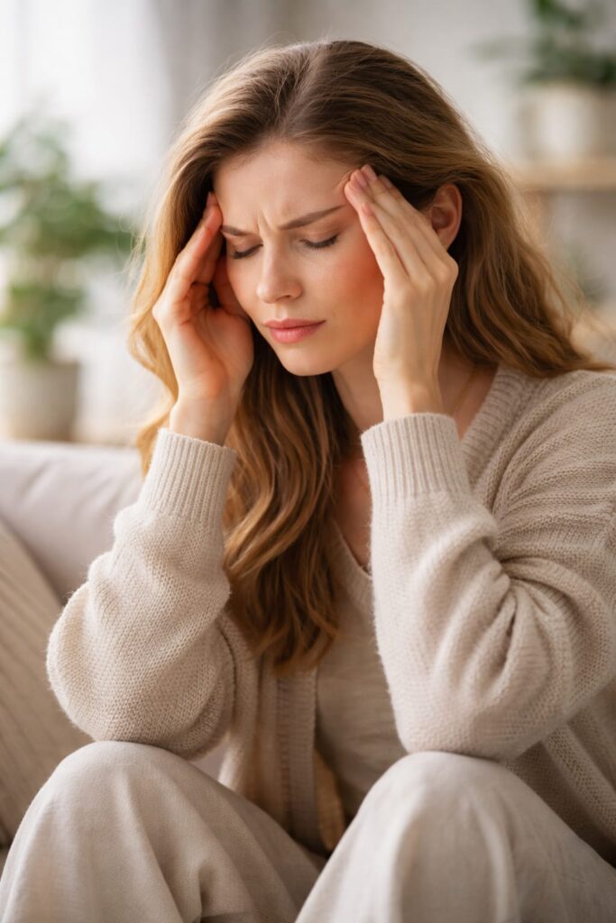 Tight shoulders, headaches, and body stiffness caused by stress.